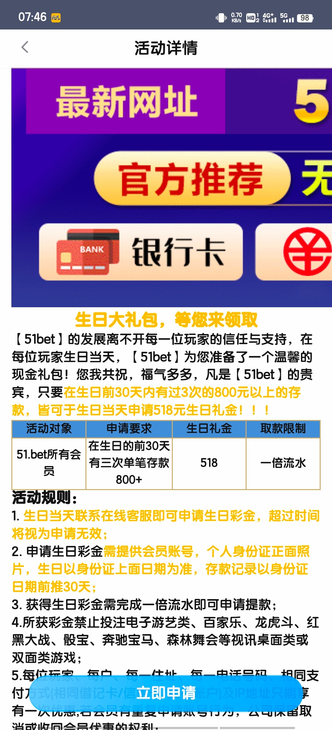 这几天生日 发点有生日礼金的平台 我要充值套彩金