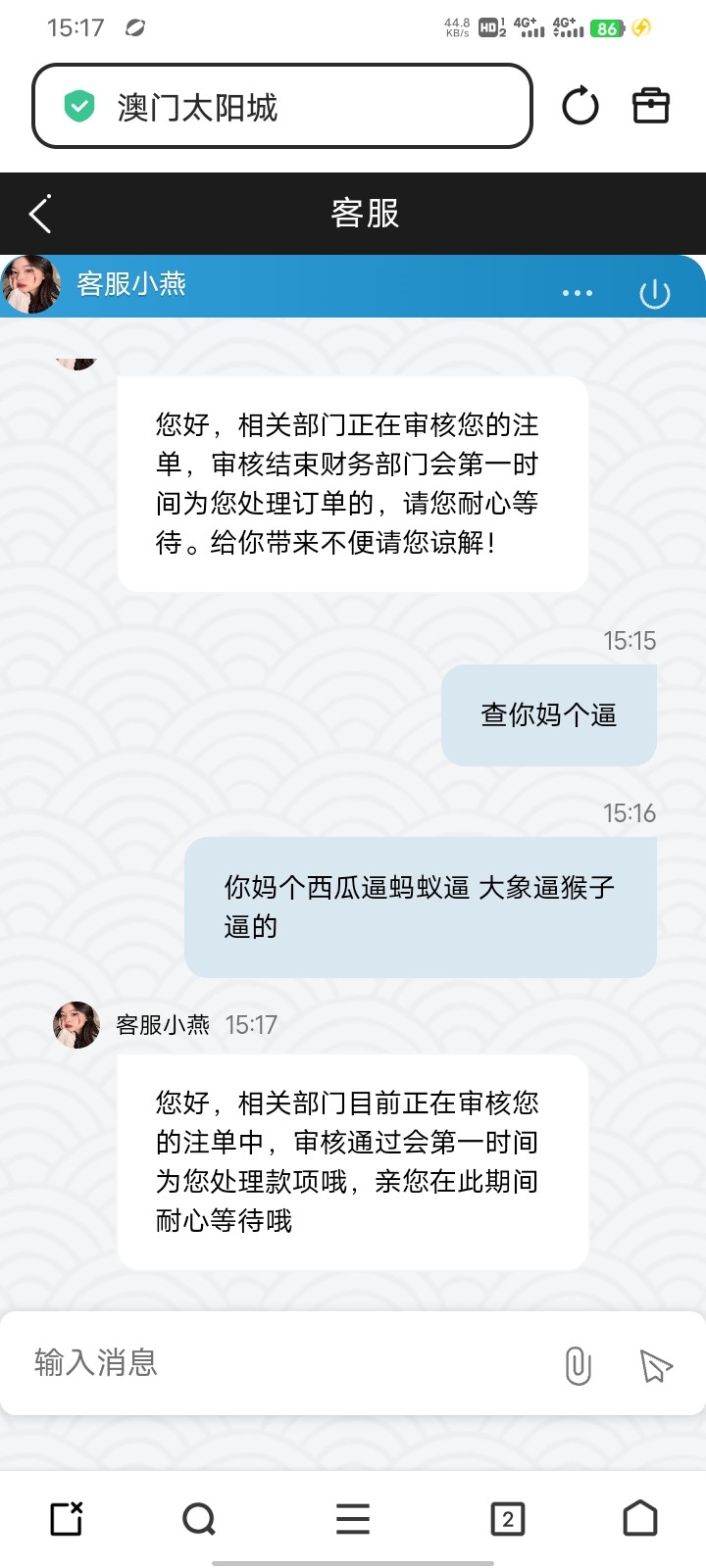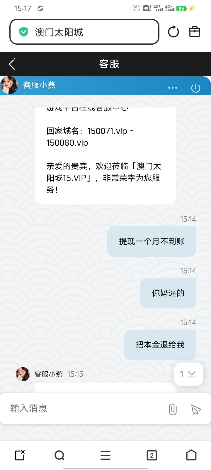 咖聊客服全部离线,加了新的也是离线,网站提款之前10分钟到,现在几个小时还是审核中