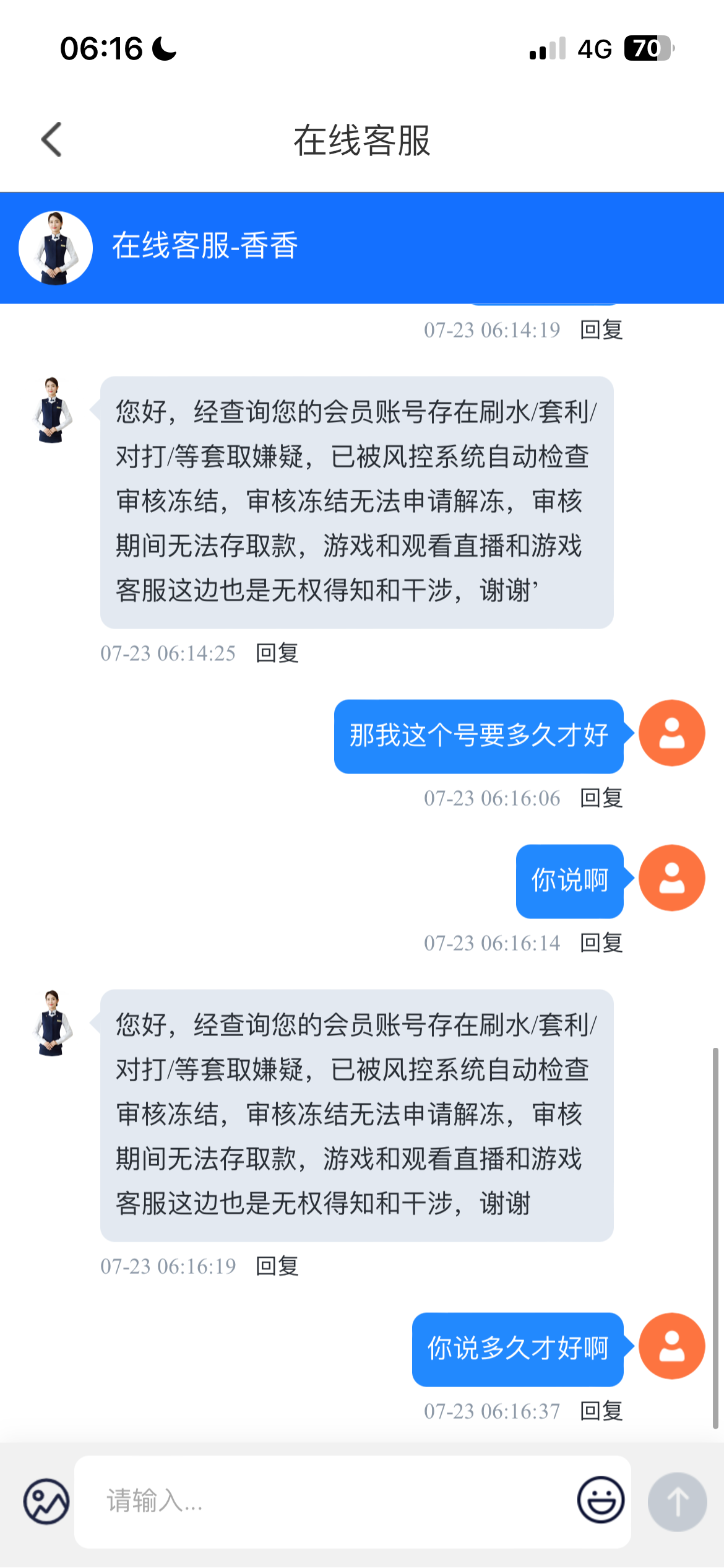 大家千万不要去玩 是个黑平台 你充值一百块钱送二十 直接开八毛磨免费 号直接给你封了