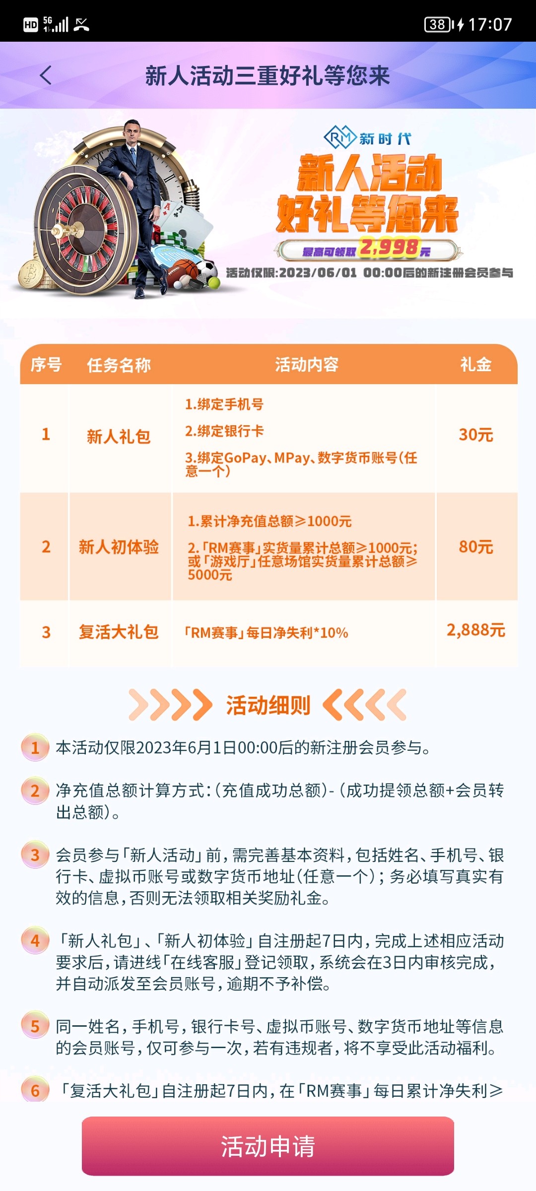 注册,注册时一定要记住账号,然后登录去下载APP,绑定银行卡手机号钱包联系在线客服申请新人礼包,一般24小时能到