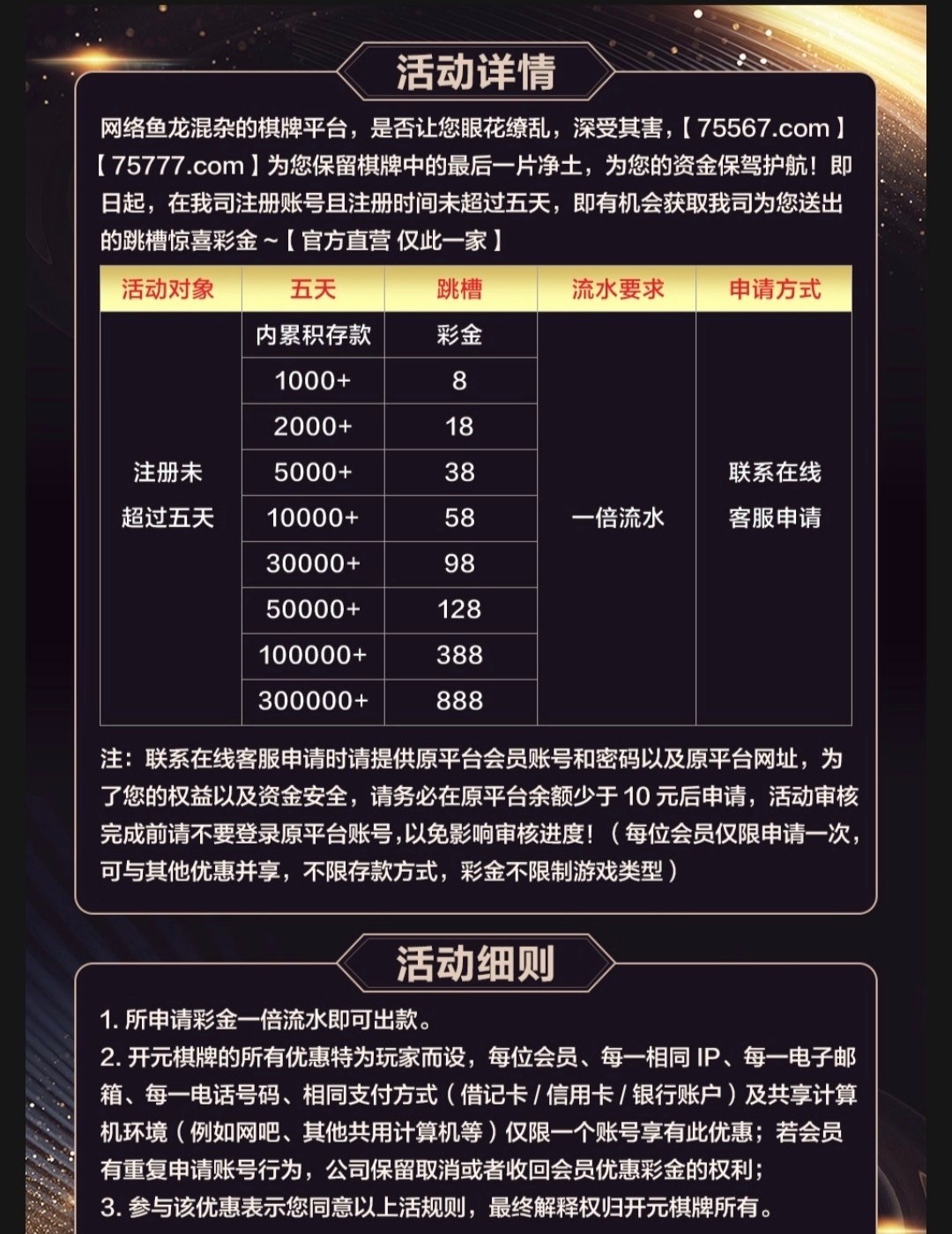 【开元75777】——(跳槽金)