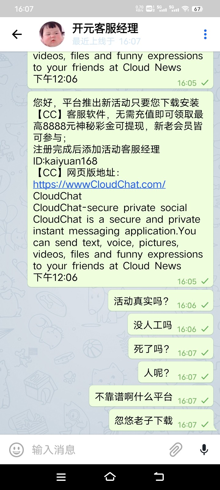 下载CC,添加kaiyuan168报ID,ID,不是账号,充值过的彩金更高,人多可能黄,不送无视即可,kkgg5555.com