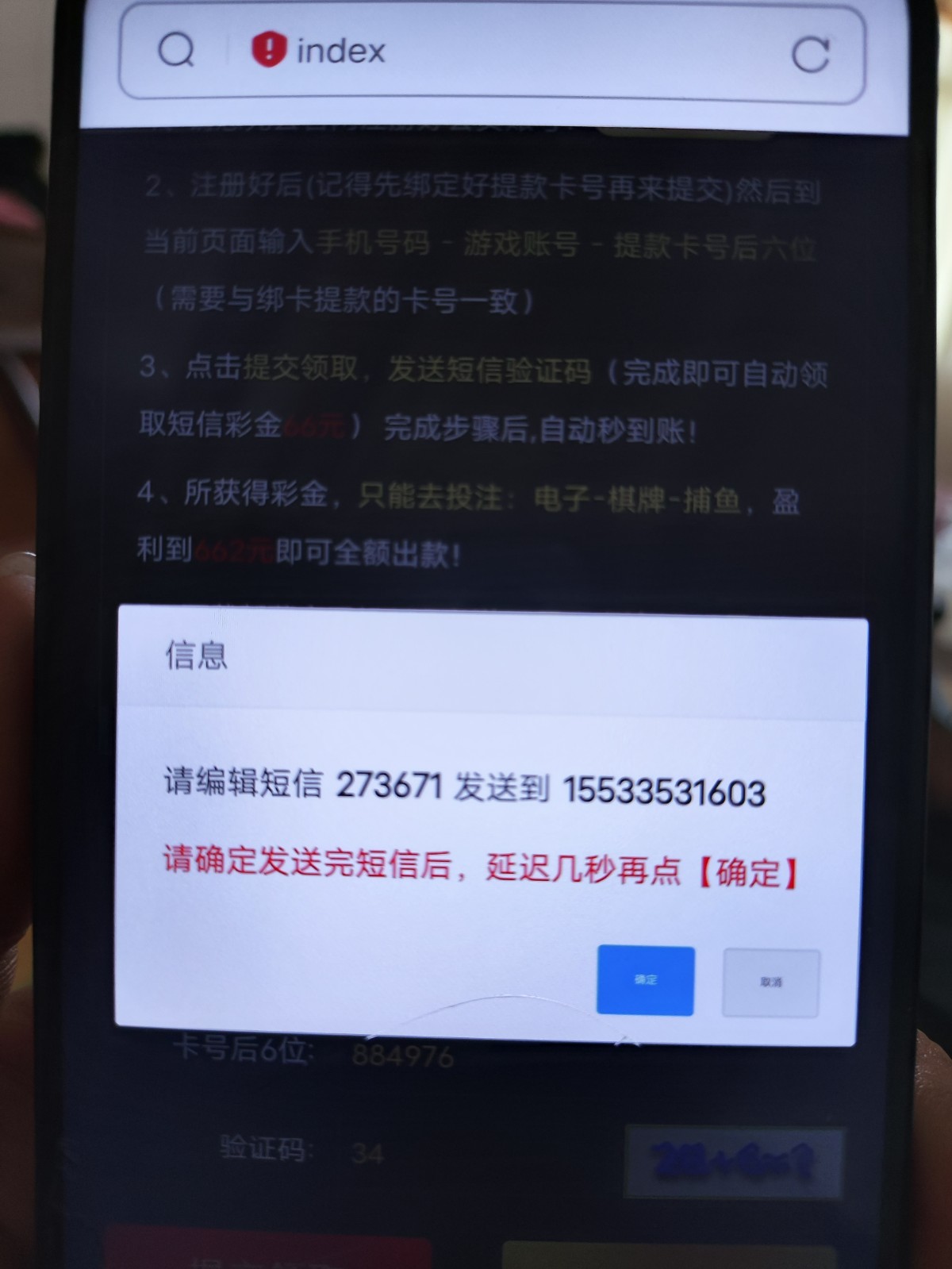 这个平台没有收到短信都可以领取真的很假我两个手机号都领了都没有收到短信我真的服了出了一个号663块