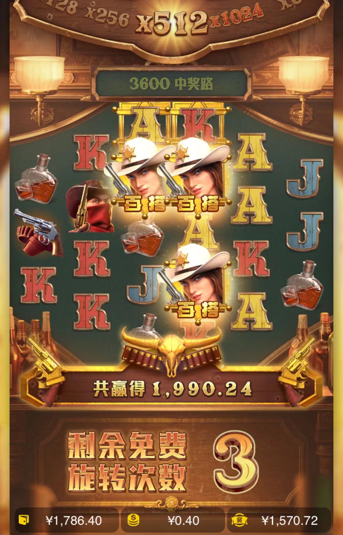 玩了这么多年真的第一次见满倍 还有几次免费直接不给我转了 直接退出免费模式