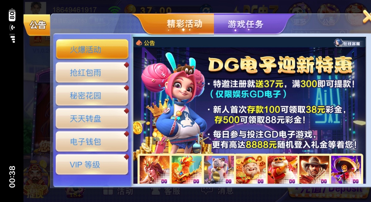 手机号注册,注册秒送37彩金,没有就是黄了,打到300提现,出款自测