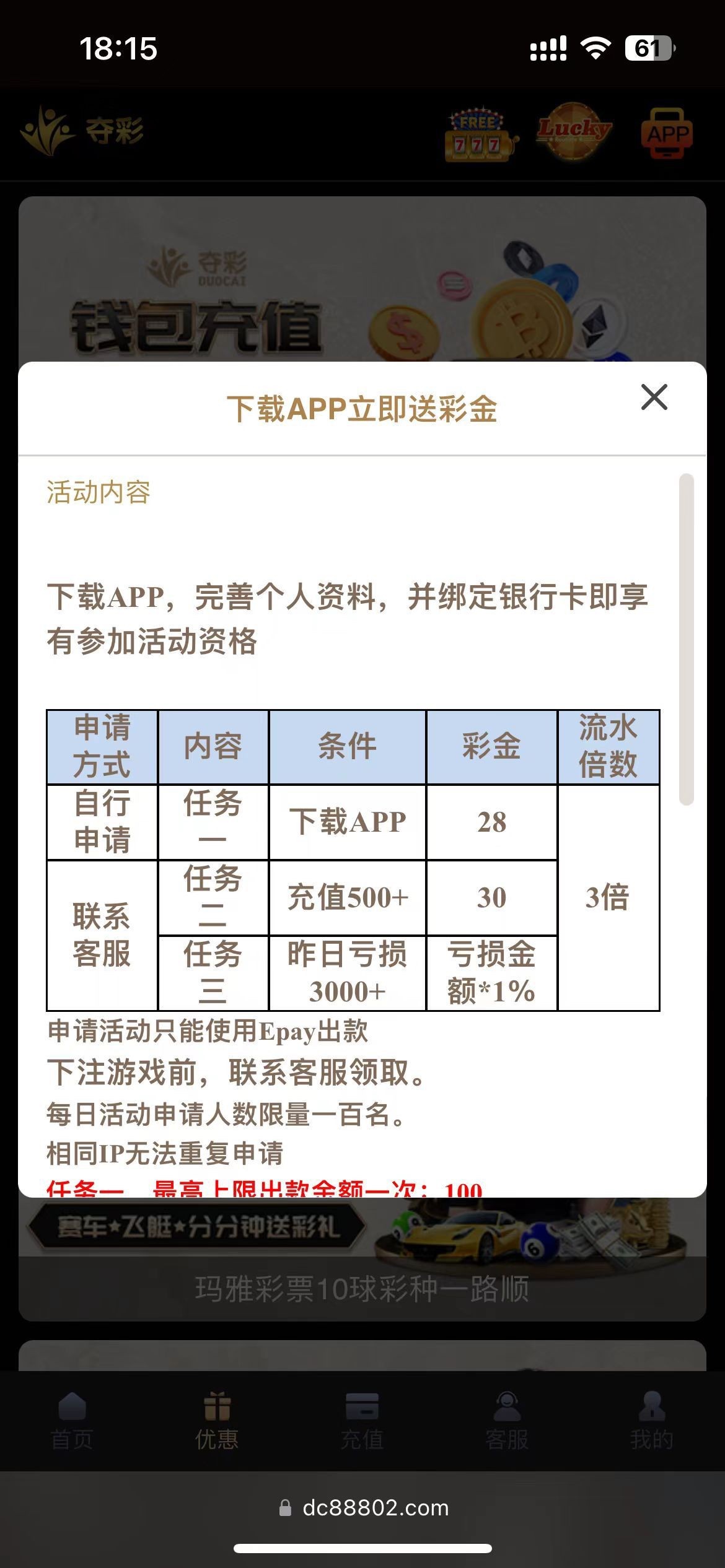 新用户下载APP注册绑定信息yhk等自助申请28  申请不了去联系客服去申请28彩金一倍流水满100提现,每日限制100名额