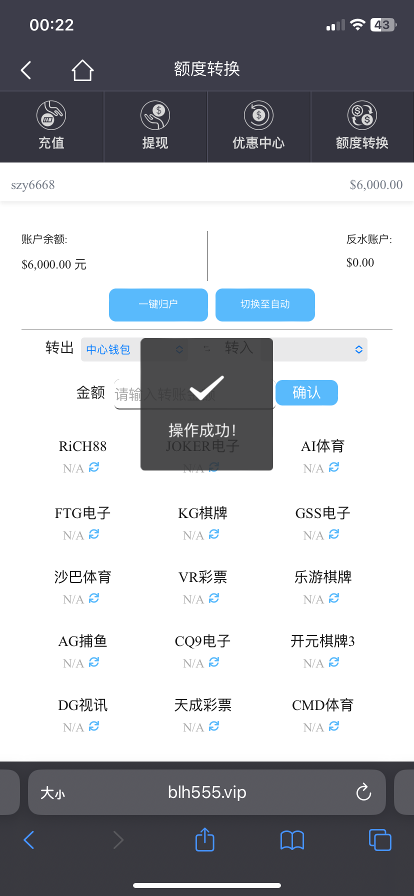 我还以为是bbin旗下的,你这个是纯黑台,冲100提100都出不了