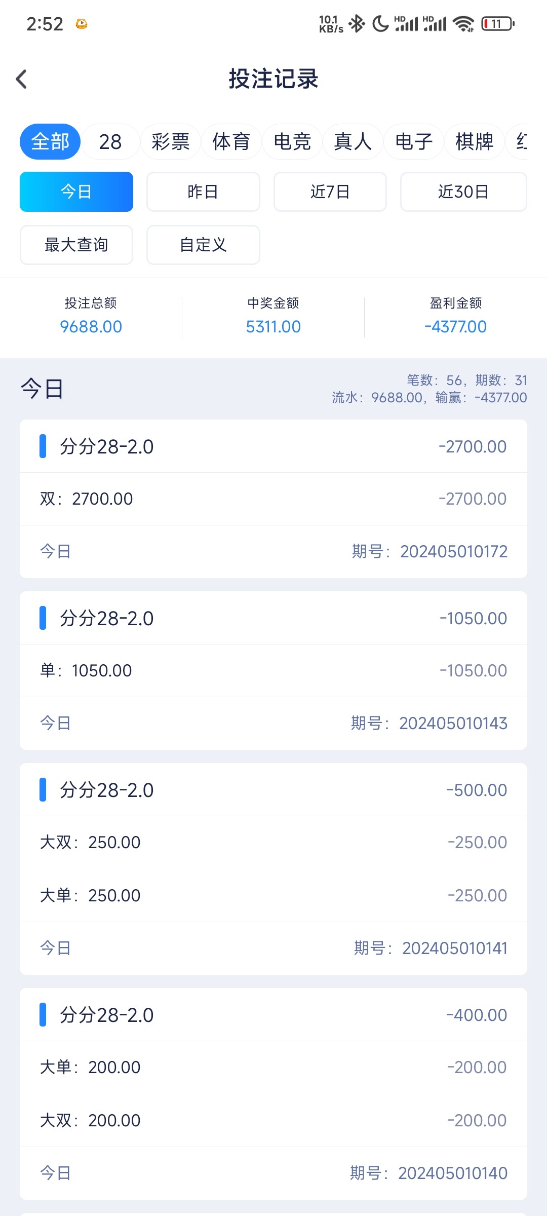 昨天不是赢了600多张,怎么今天又输完了