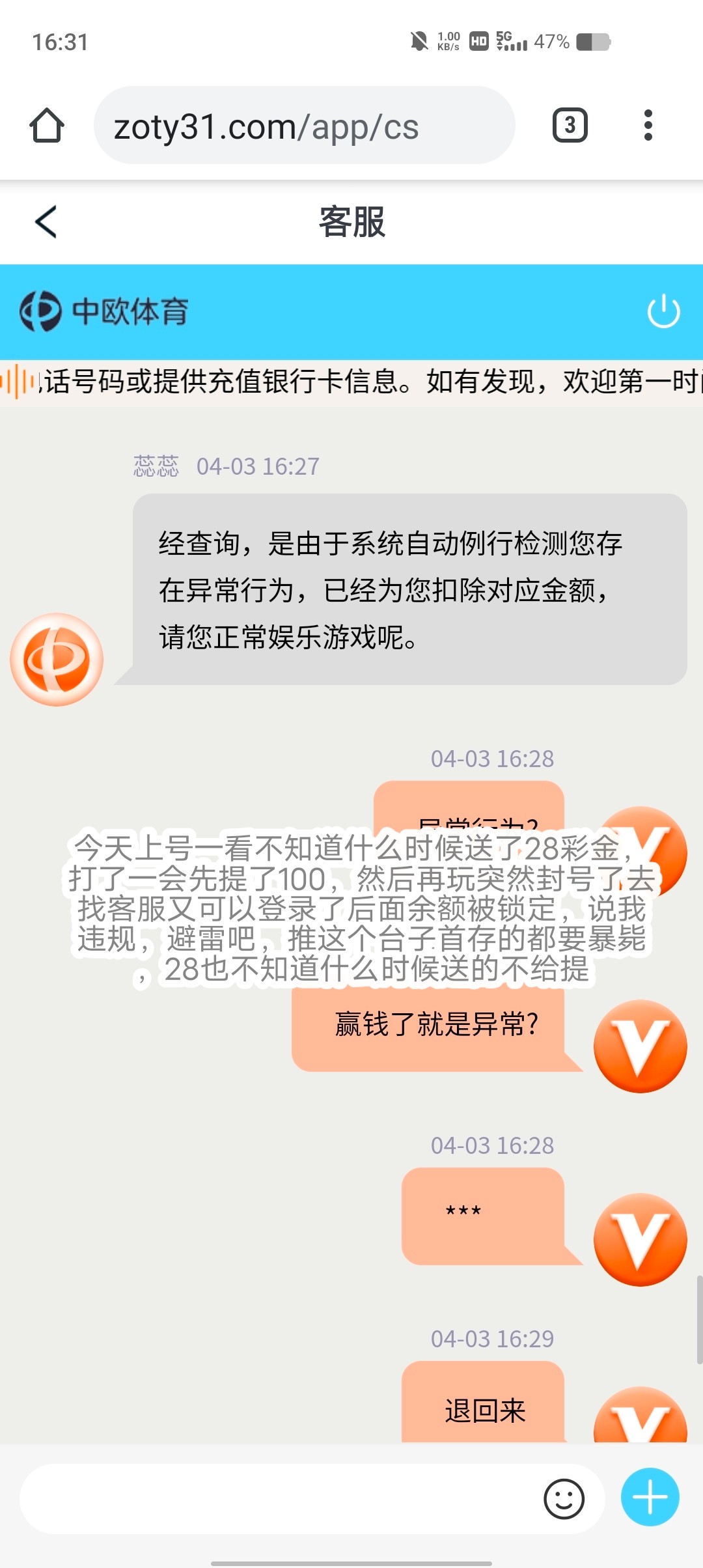 昨天我上号一看有28彩金然后打到100多提了100直接封号了看下面图片吧,避雷