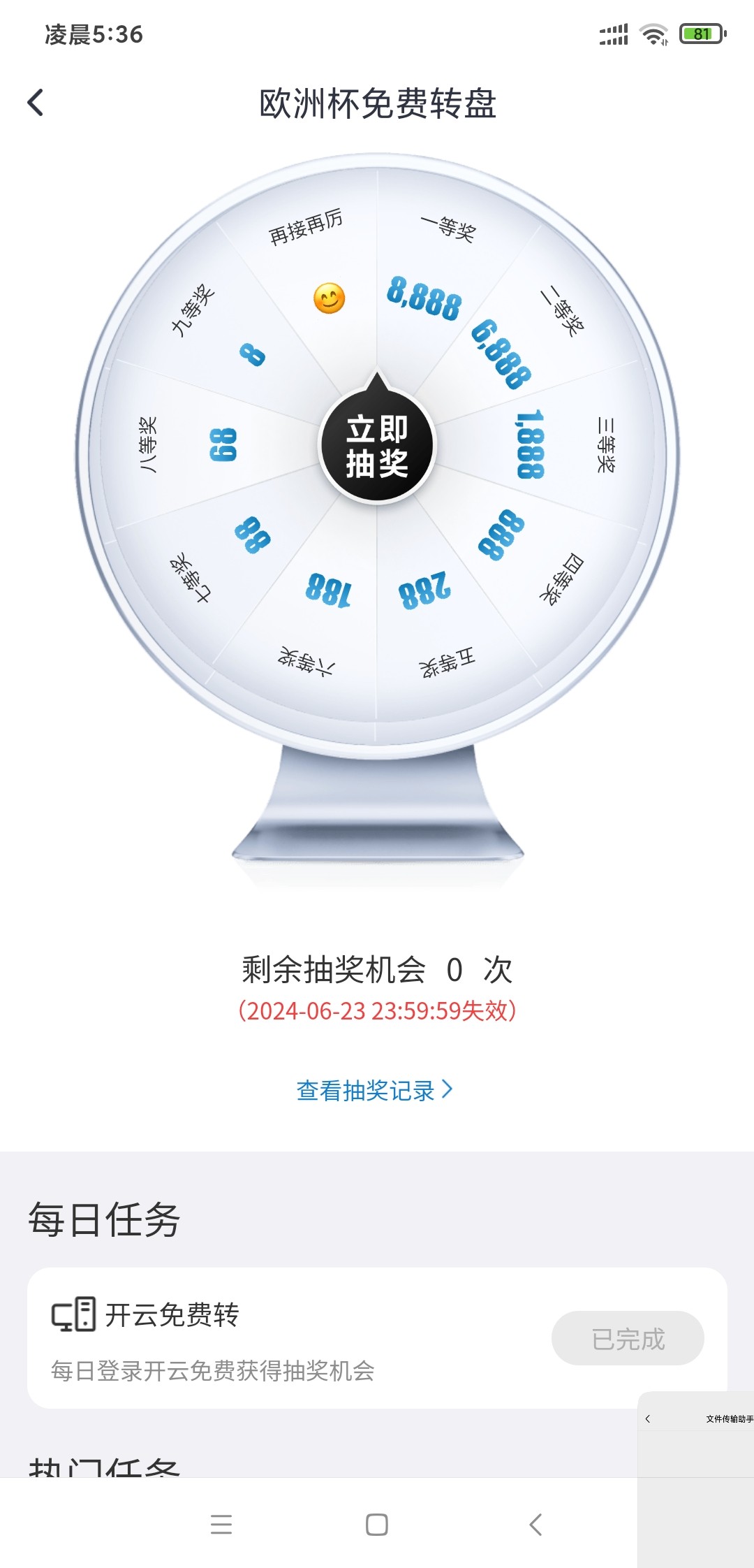 转盘每天转一次,有的台子有答题活动,王者回归已经更新七月份份额了自己活动里领。