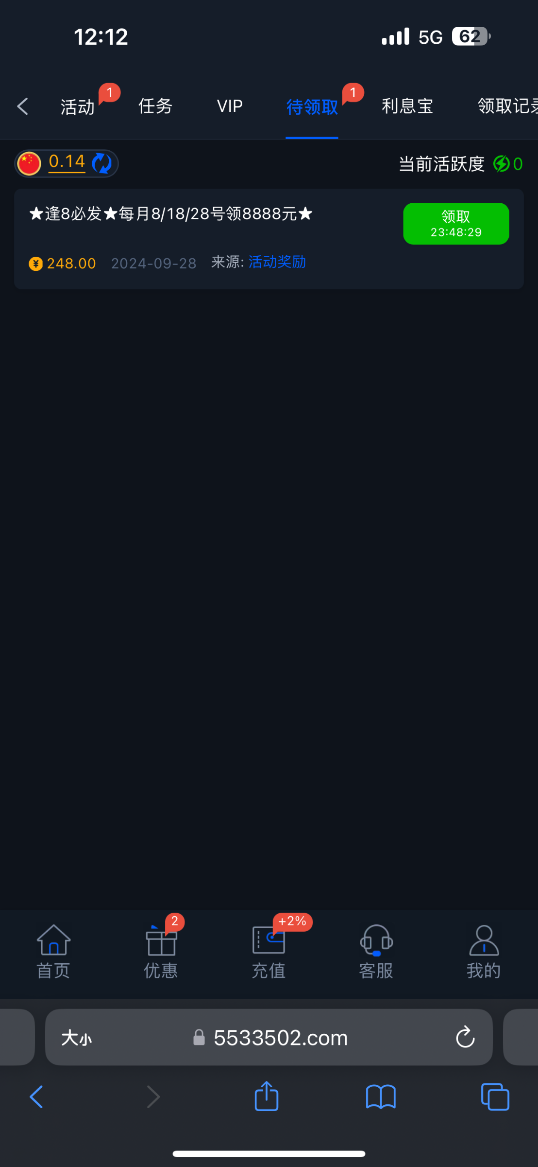pg直营站月回馈 有号的上去看看我领了两百多