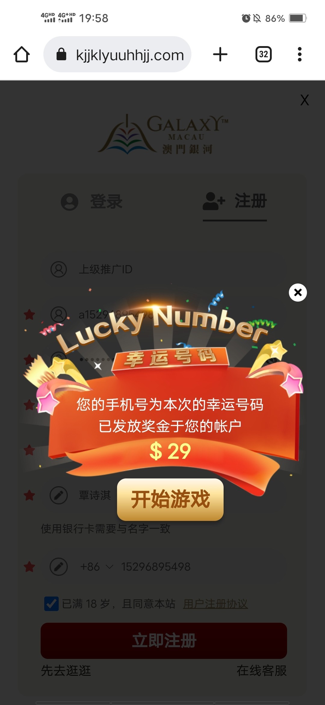 手机号注册秒送29老用户上号看看,国庆红包,自测