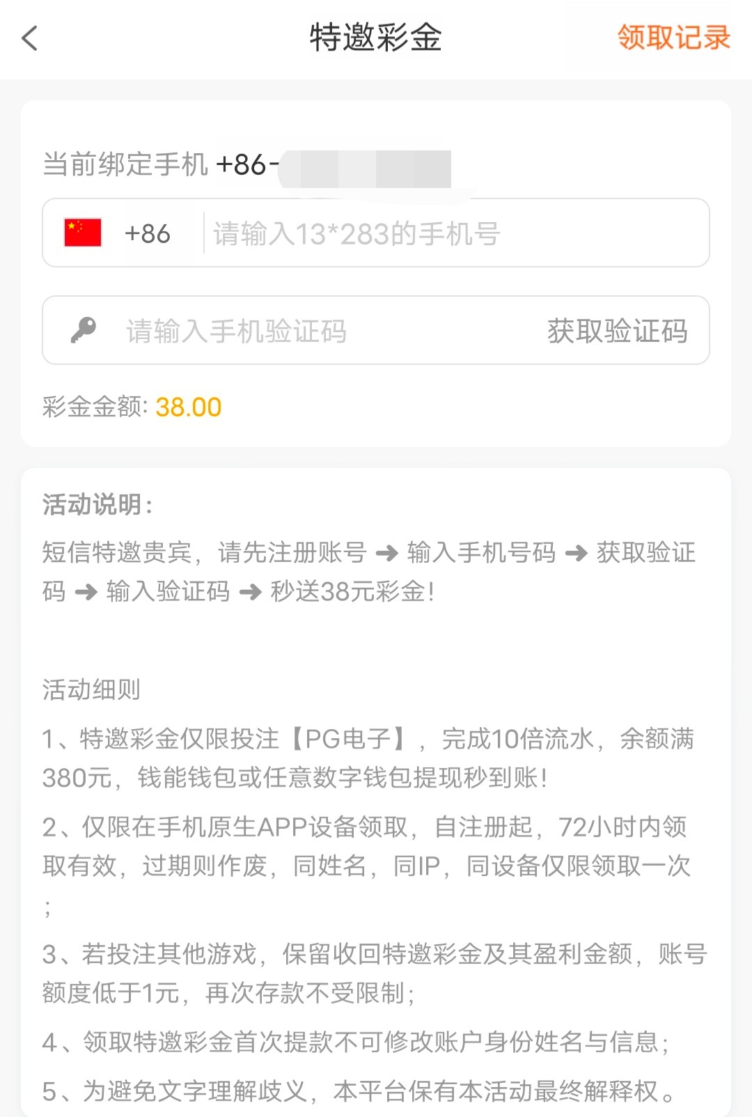 新会员注册绑卡下载原生APP,登录进去特邀界面申请,成功就是38元,我没有碰到,碰不到无视即可。