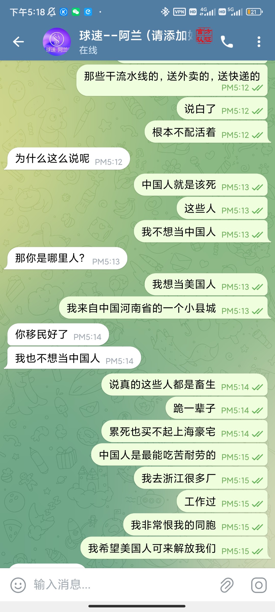 北美权蛆白虎弟 韩国和日本是非常优秀的国家,人民是非常优秀的人民,中国人是最能吃苦耐劳的,你们好好干吧,累死你们,好好纳税,我已经准备移民美国了,手机就用苹果,电车就是特斯拉,美国的空气都是无比香甜的!美国再次伟大!