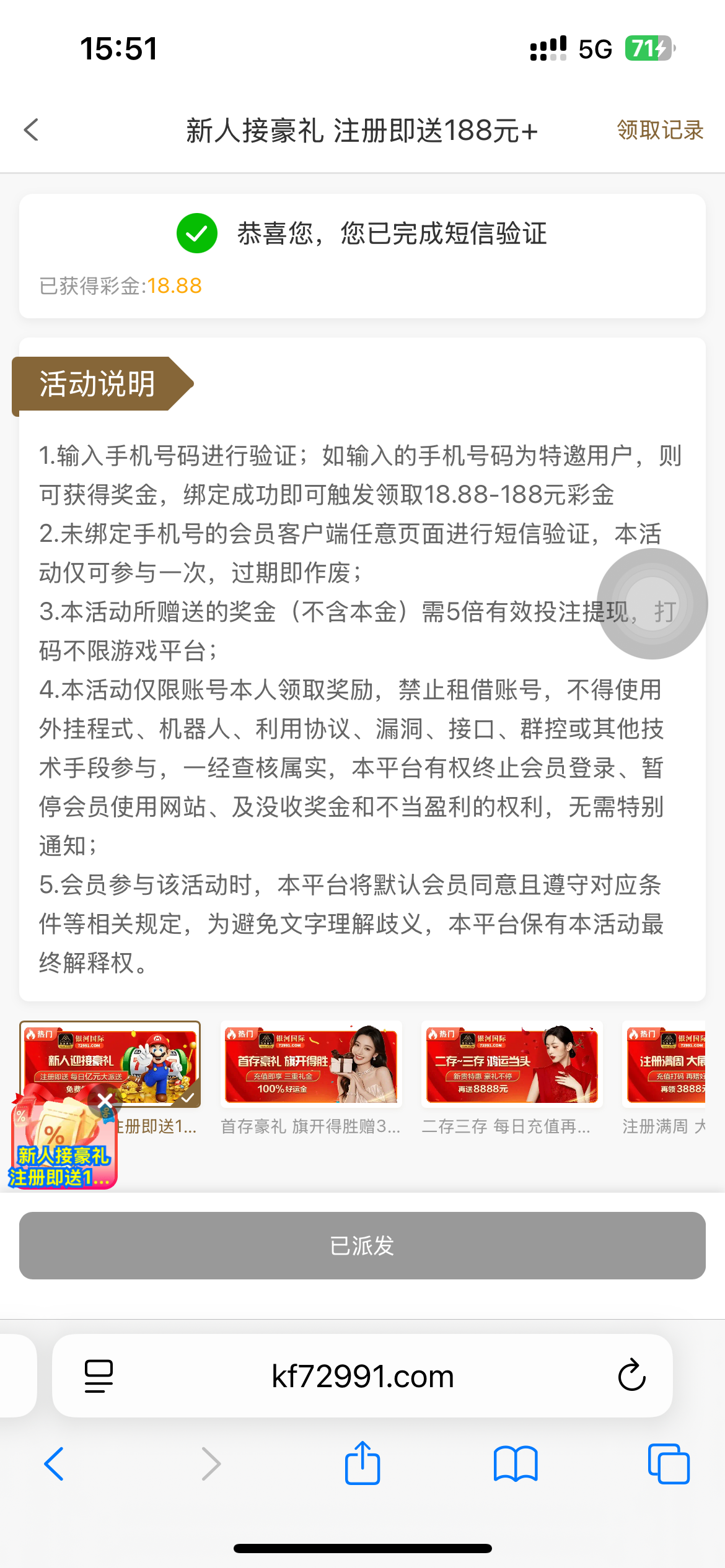 接到电话,在优惠手机号领了18.88