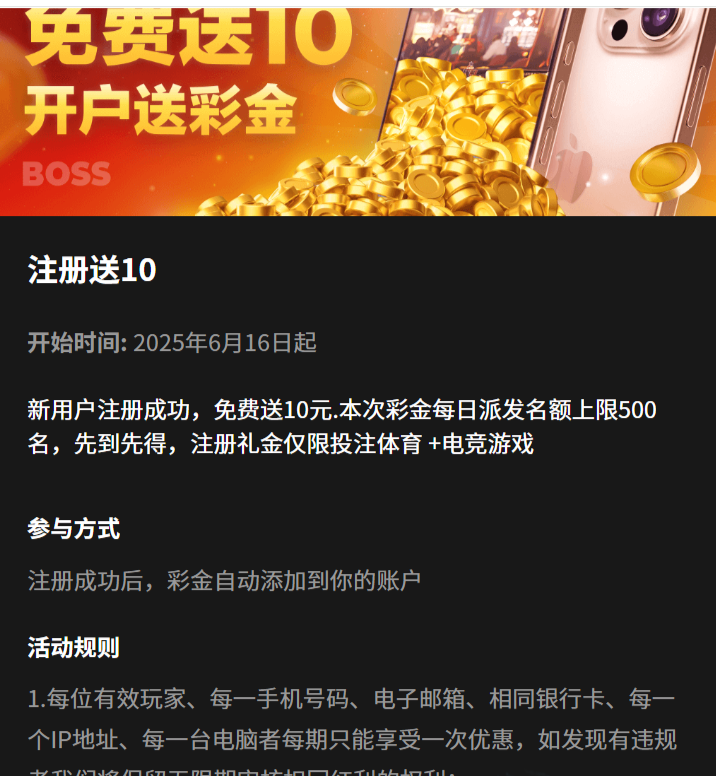 【BOSS体育】——注册彩金