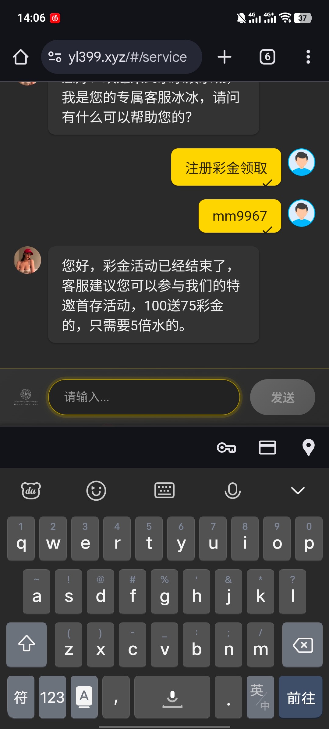 yl399.xyz 注册绑定找客服申请 黑不黑不知道 没打出来