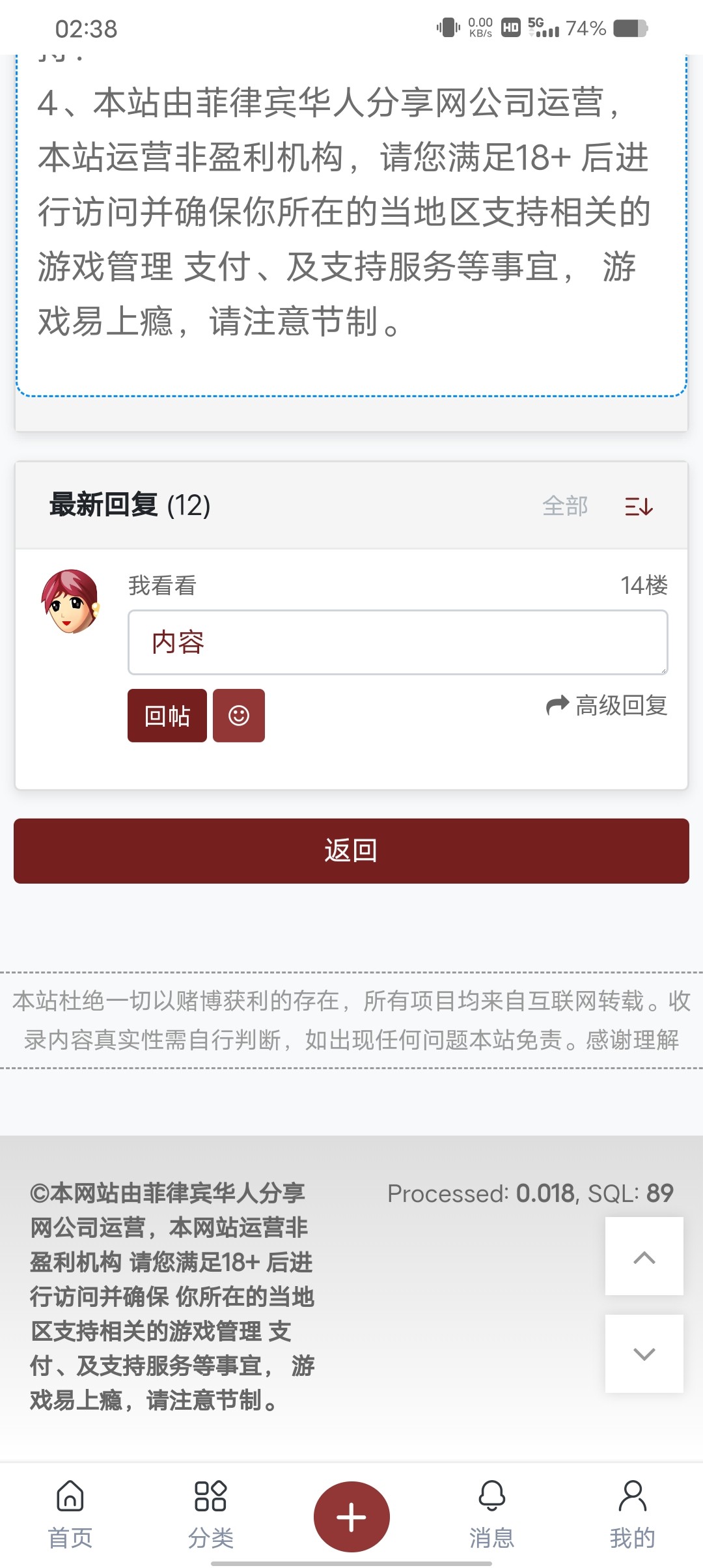 4、本站由菲律宾华人分享网公司运营,本站运营非盈利机构,请您满足18+ 后进行访问并确保你所在的当地区支持相关的游戏管理 支付、及支持服务等事宜, 游戏易上瘾,请注意节制。