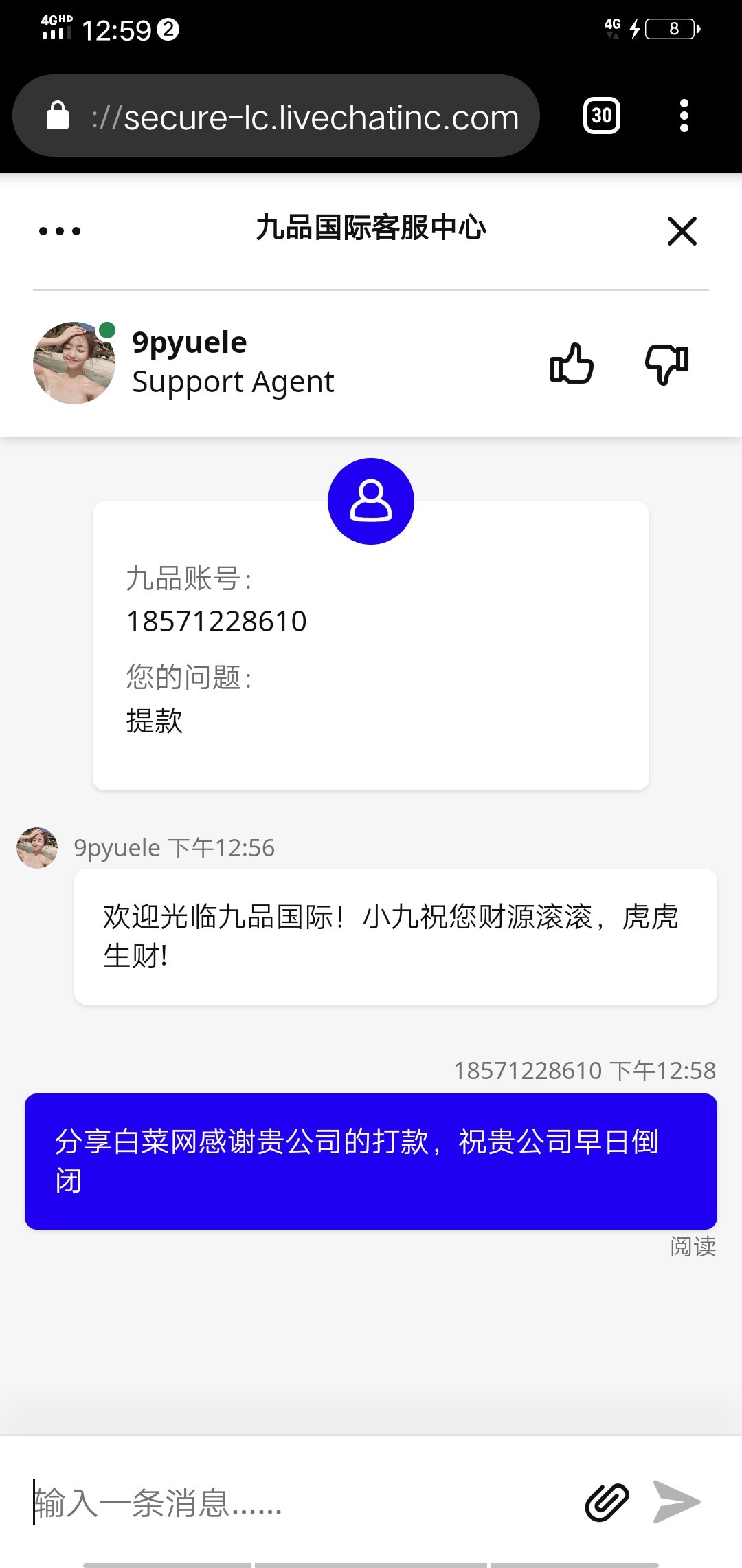 狗东西,你嫖到就闷声发财不行?非要去客服那里发?现在黄了。一辈子吃不上4个菜
