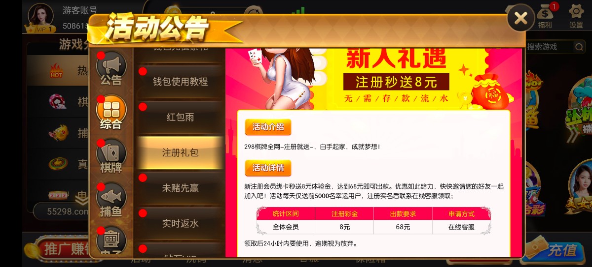 注册账号 绑定个人信息秒送8打到68元即可出款 查ip