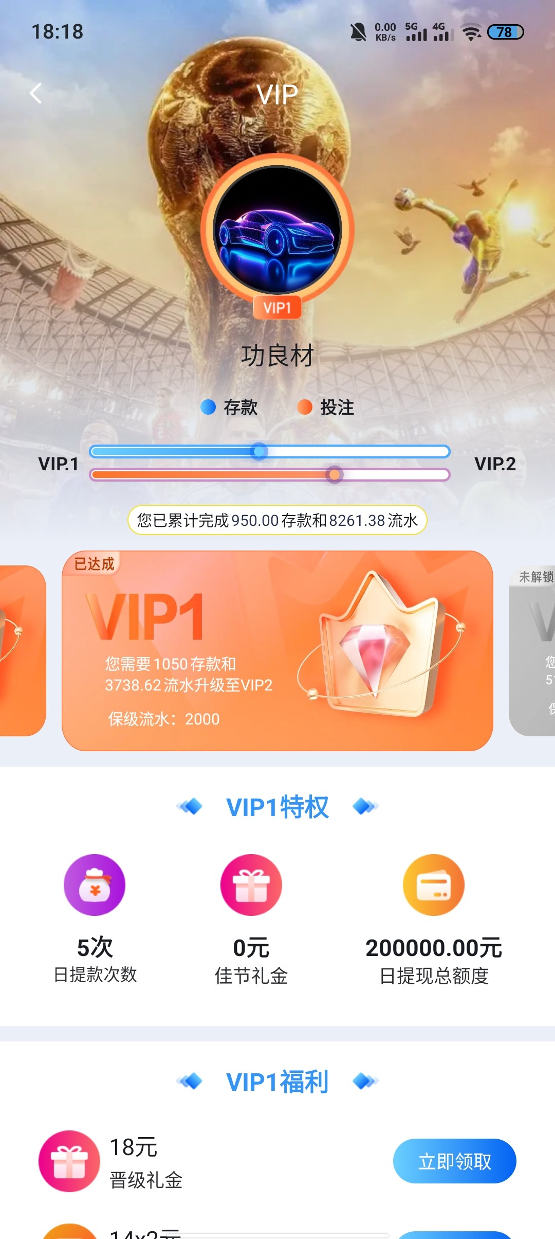 已达标,充值950