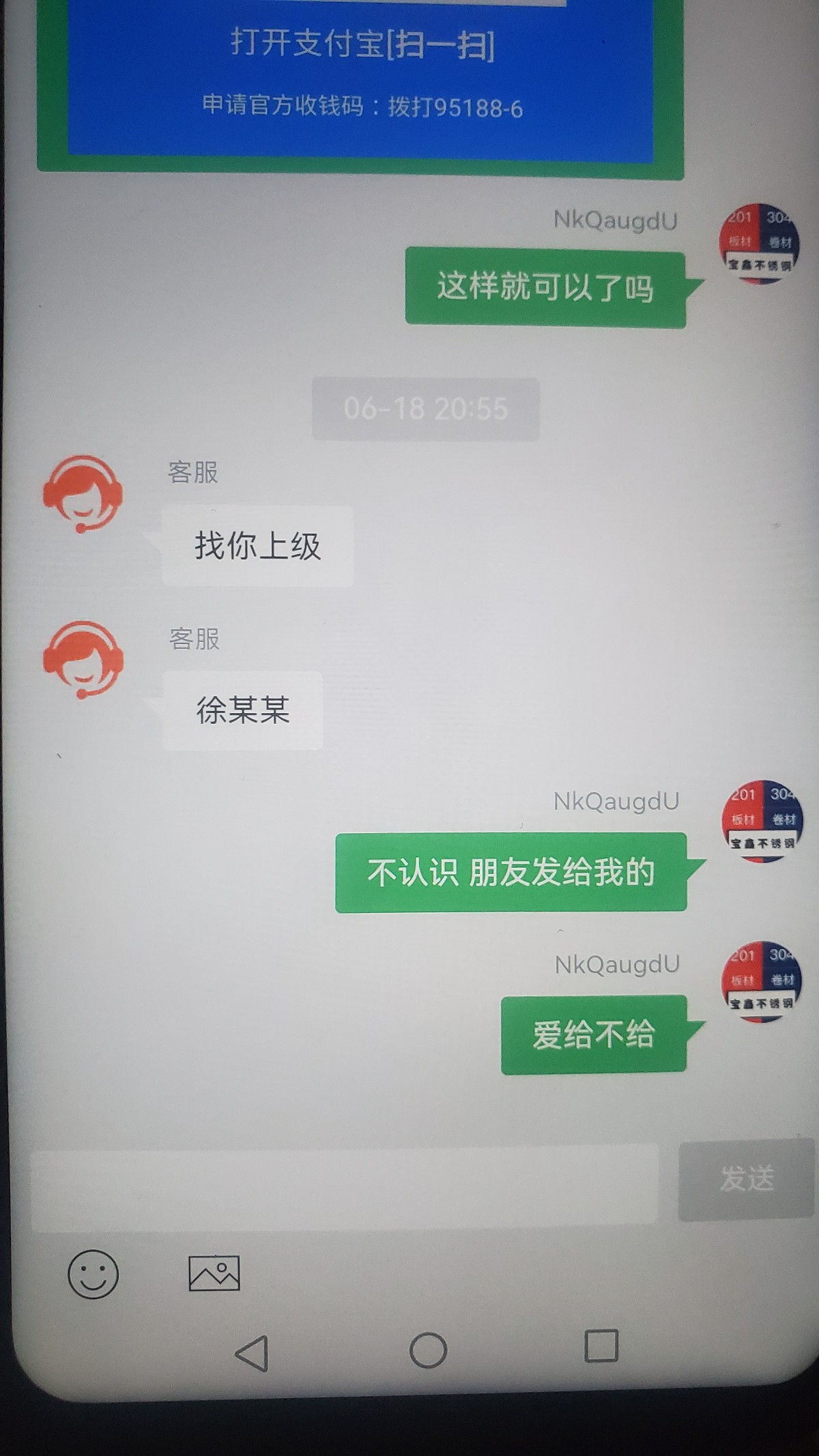 加谁的微?客服让我找上级  意思就是不给