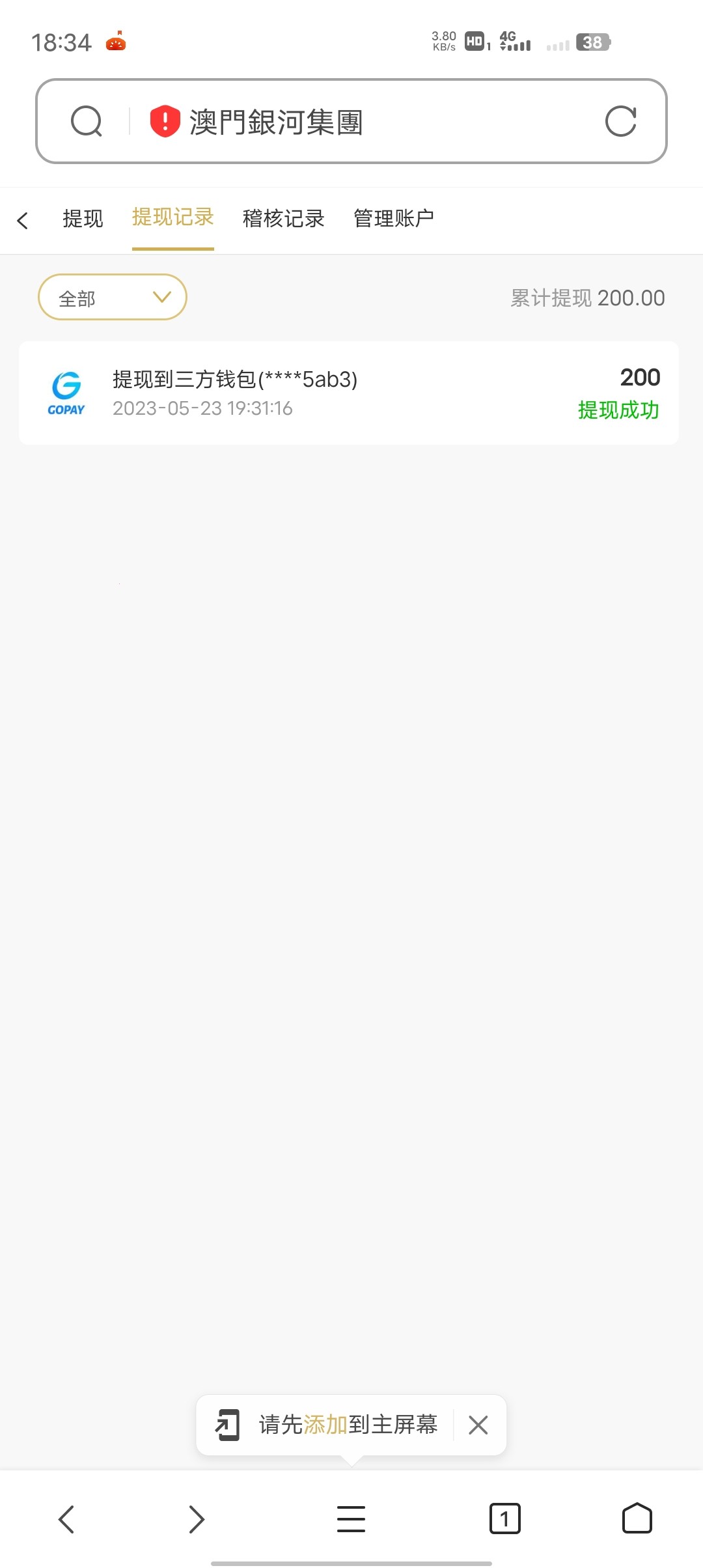 5/23号就给我打了电话,6毛麻将爆了200多,然后充了10块绑定gop提现了