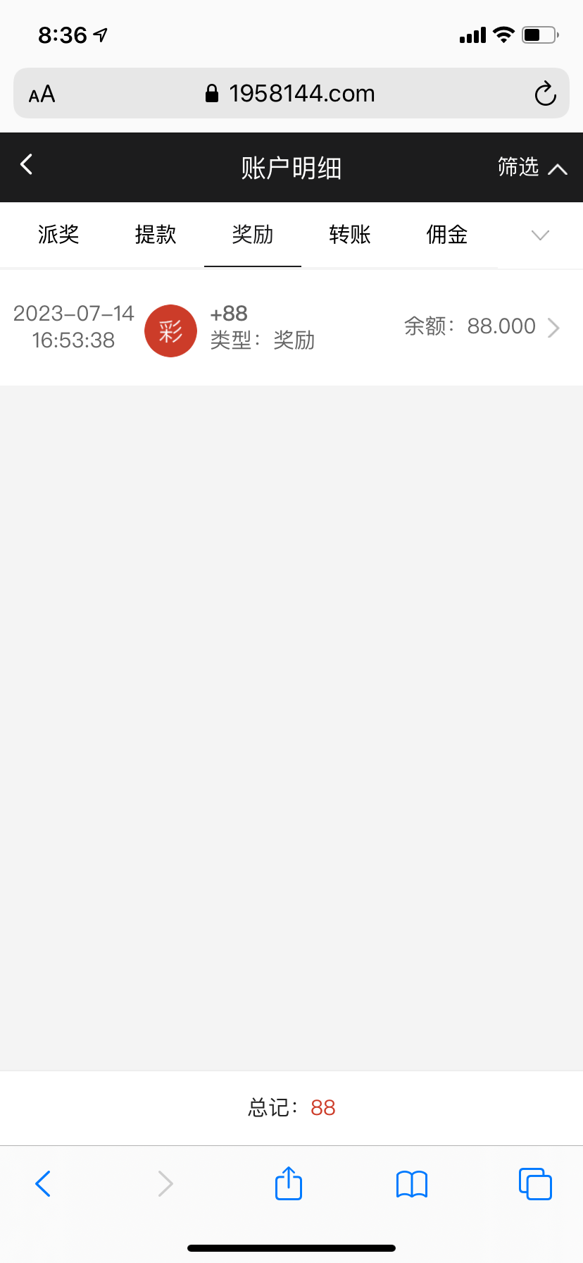 说明一下我不是狗托,我翻短信发现的,点进去登号就有88彩金的,打了几个小时才到550提现的